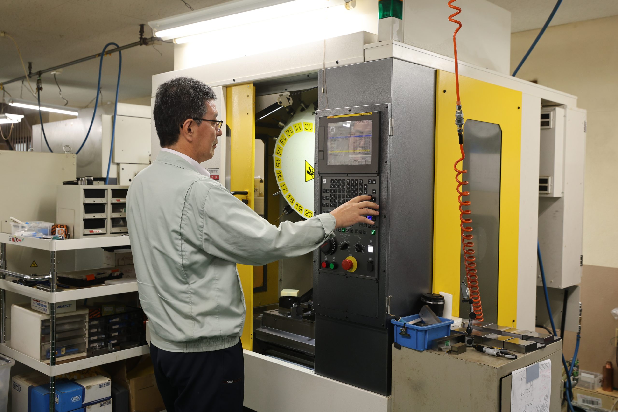 図1. 有限会社竹石アロイツール工業 技術・営業課長 佐藤武志氏が工作機械を操作している様子 有限会社竹石アロイツール工業が導入したZW3Dとは?